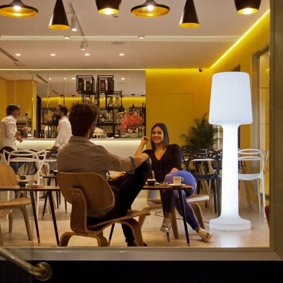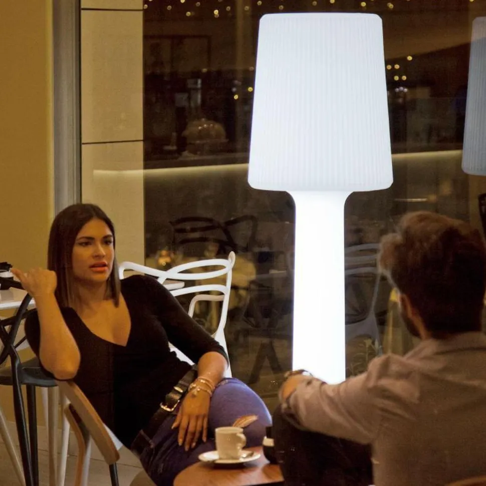 Die Stehlampe mit geriffeltem Schirm sorgt für eine angenehme Atmosphäre und setzt überall einen dekorativen Akzent – ein besonderer Blickfang für jeden Anlass