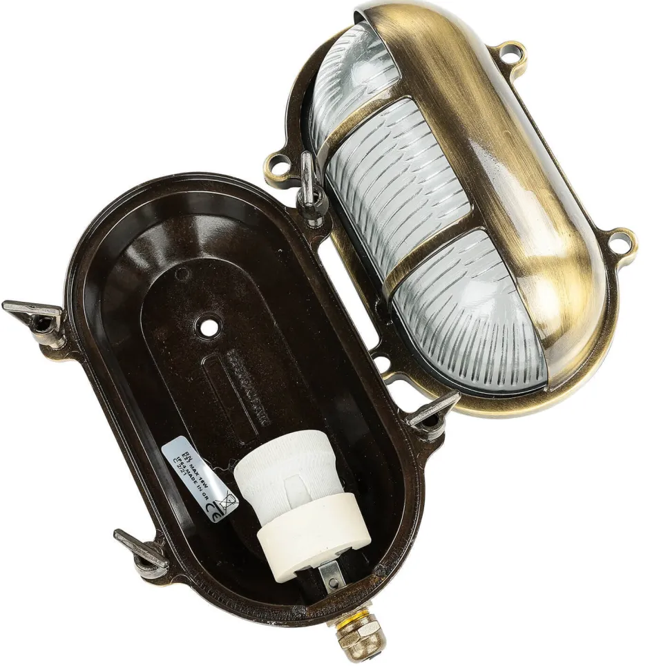 Maritime Außenwandlampe aus massivem Messing im Stil eines antiken Bullauges