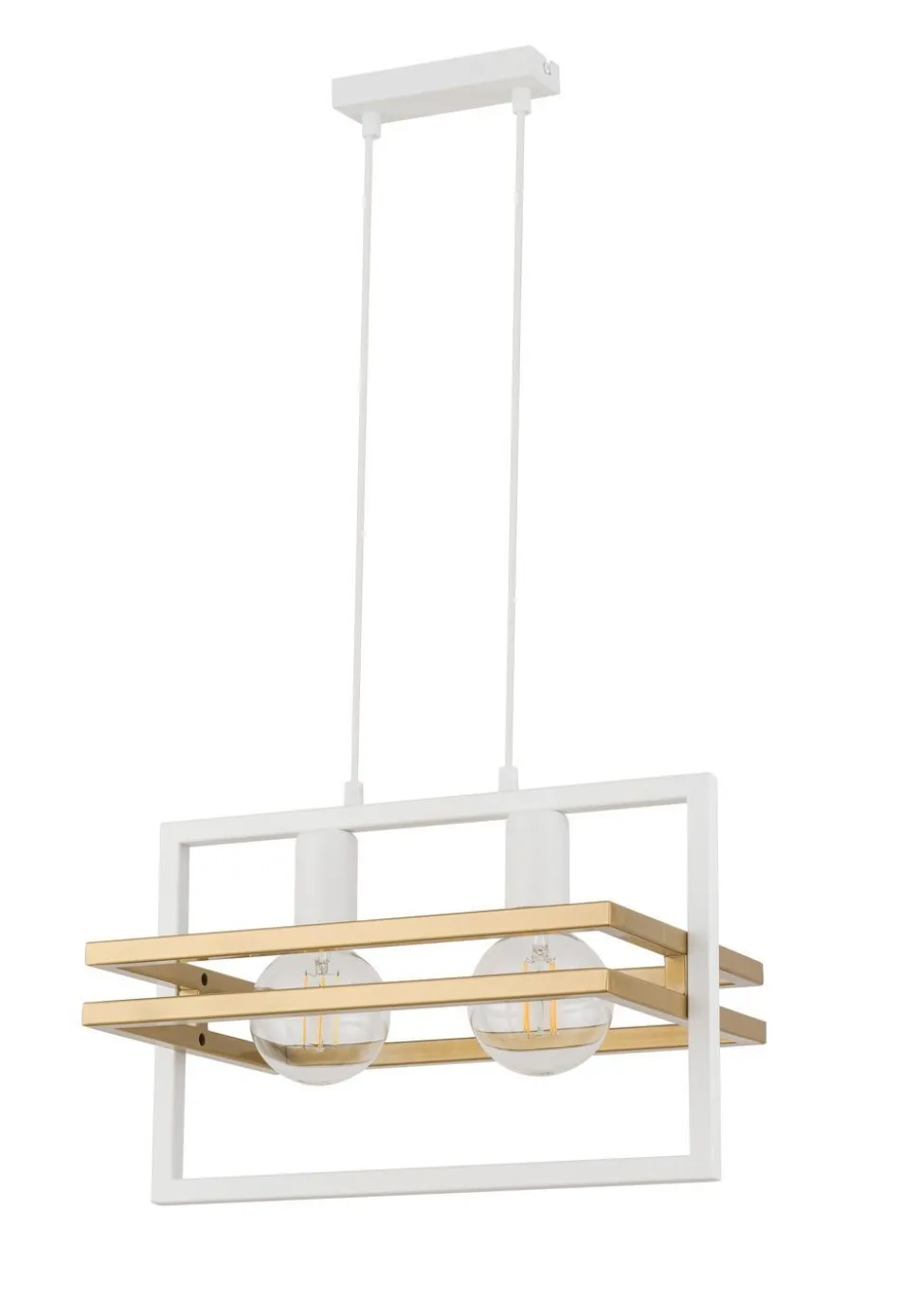 Die von zwei Rahmen in Gold umgebenen Leuchtmittel sind frei sichtbar – diese bestimmen maßgeblich den Look der Leuchte mit