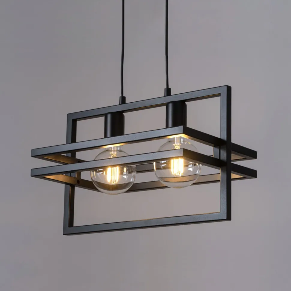 Die von zwei Rahmen umgebenen Leuchtmittel sind frei sichtbar – diese bestimmen maßgeblich den Look der Leuchte mit
