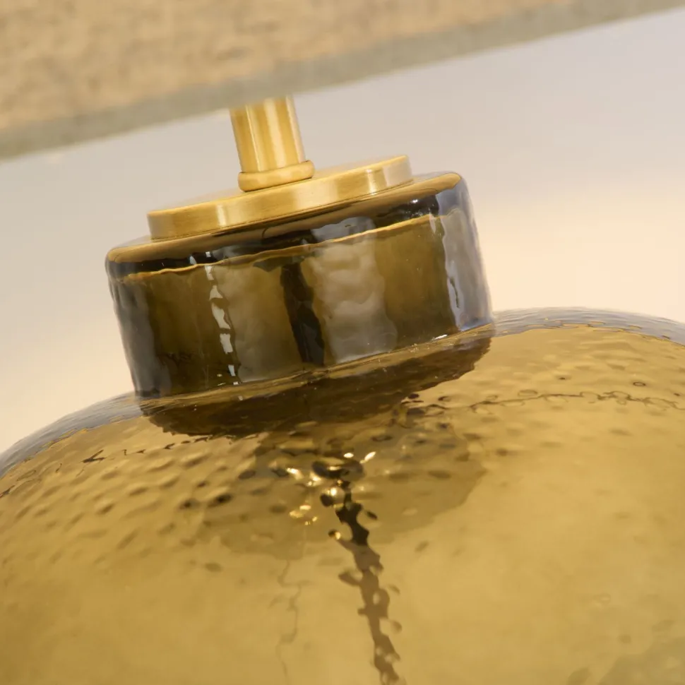 Moderne Tischleuchte aus Glas und Leinen in Grün und Natur