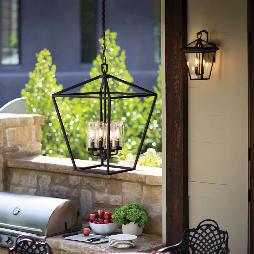 Die Outdoor Hängelampe sorgt für eine großzügige Beleuchtung nach allen Seiten und erhellt Terrasse, Veranda, Eingang und Balkon – für mehr Sicherheit auf dem Grundstück