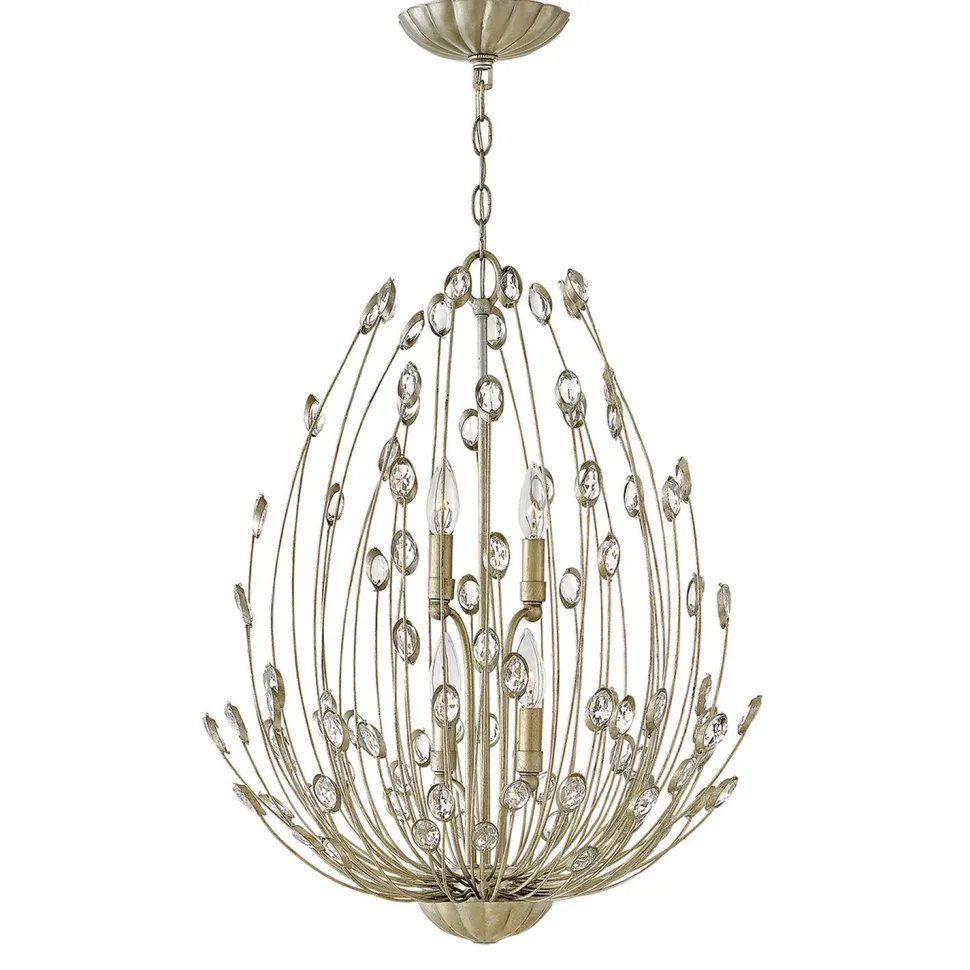 Kunstvolle Pendelleuchte in Silber mit funkelnden Kristallen