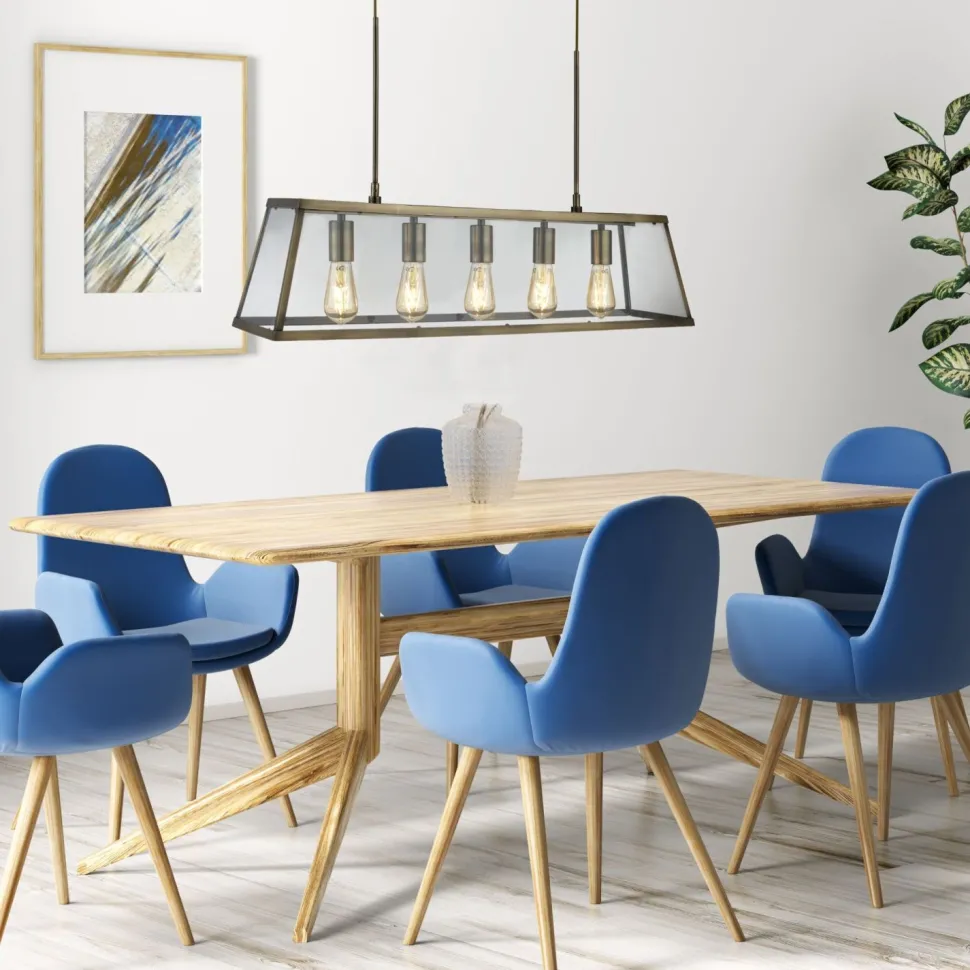 Das klare Glas sorgt für eine direkte Beleuchtung und macht aus der Hängelampe einen besonderen Blickfang in Wohnzimmer, Esszimmer und Küche