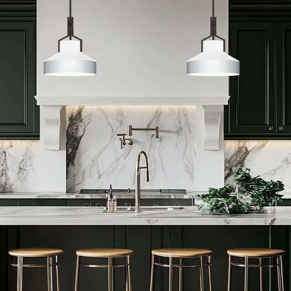 Stilvolle Pendelleuchte in Bronze antik und Weiß