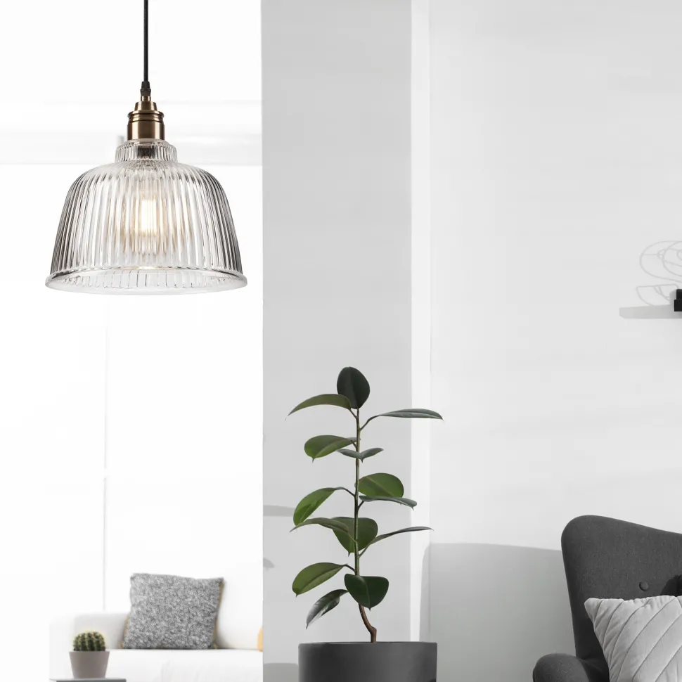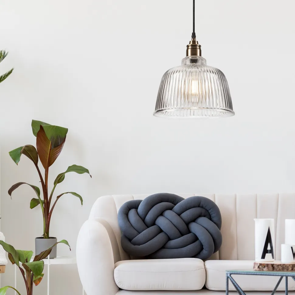 Stilvolle Pendelleuchte mit Lampenschirm aus Riffelglas