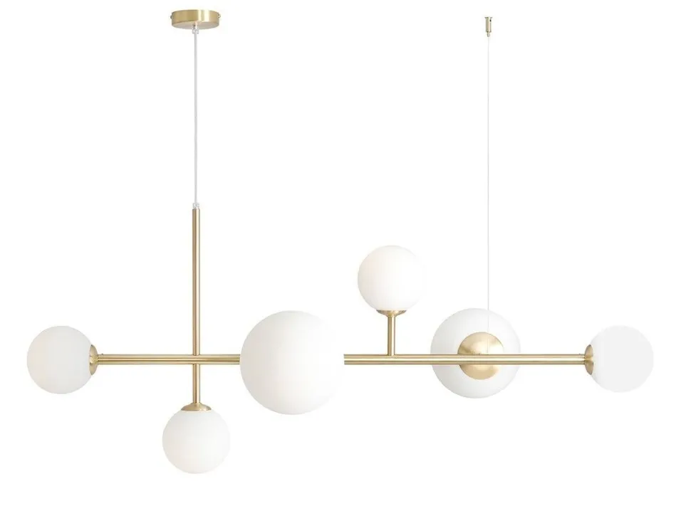 Die satinierten Glasschirme der Pendelleuchte im Kugel Design streuen das Licht blendarm für eine wohnliche Atmosphäre über Deinem Esstisch in Wohnzimmer und Esszimmer