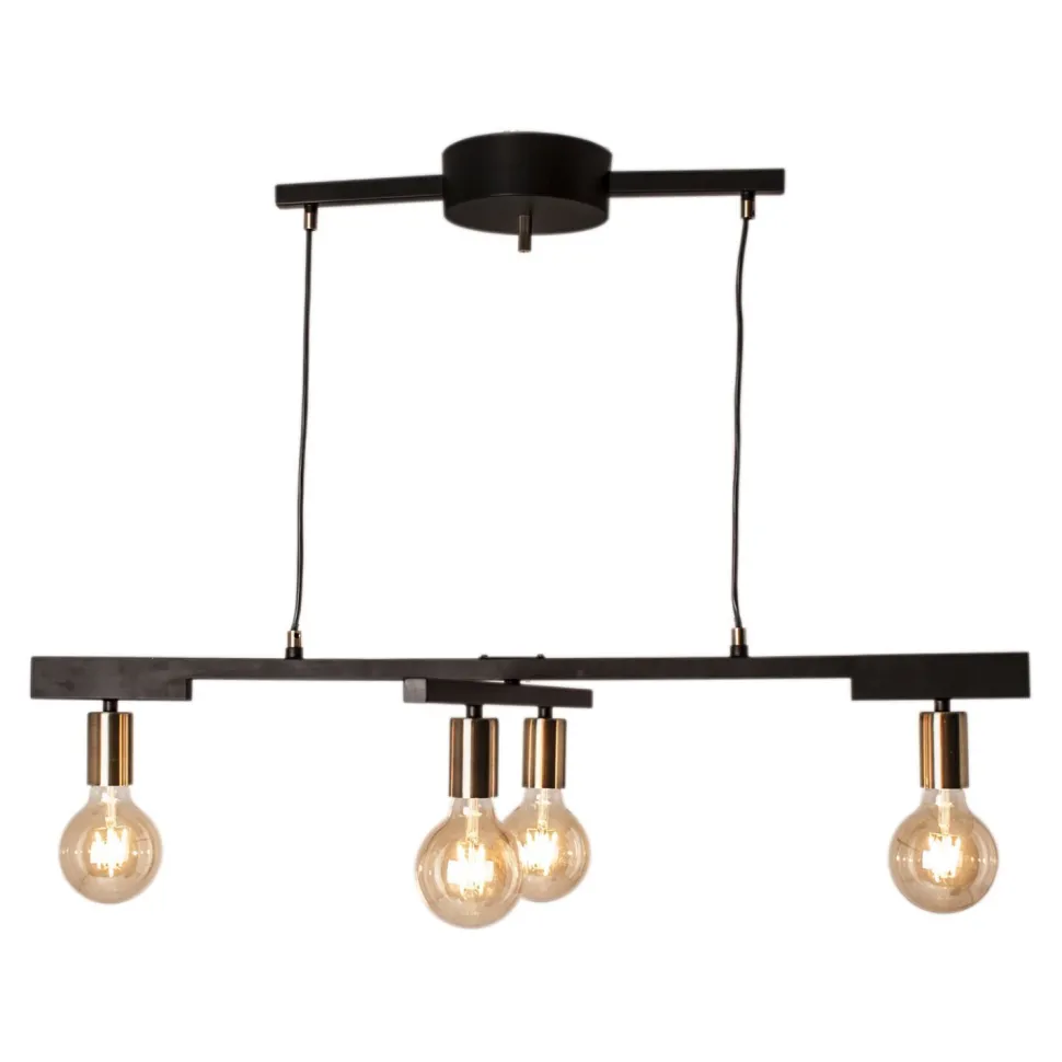 Die kreuzenden Arme verleihen der Hängelampe einen dekorativen Charakter, der durch die Akzente in Messing weiter betont wird – ein besonderer Blickfang in jedem Raum