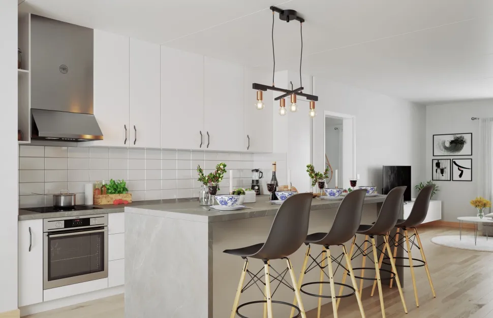 Die Hängelampe ist in der Höhe verstellbar: ideal über Esstisch, Kücheninsel und Tresen