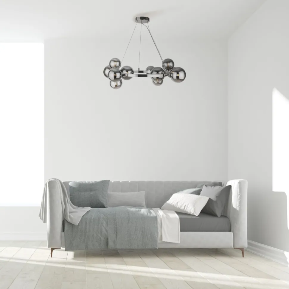 Große Pendelleuchte mit Kugelschirmen aus Rauchglas