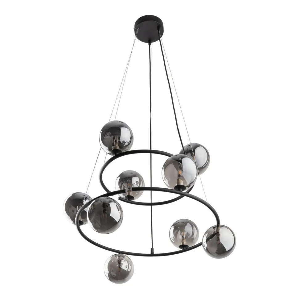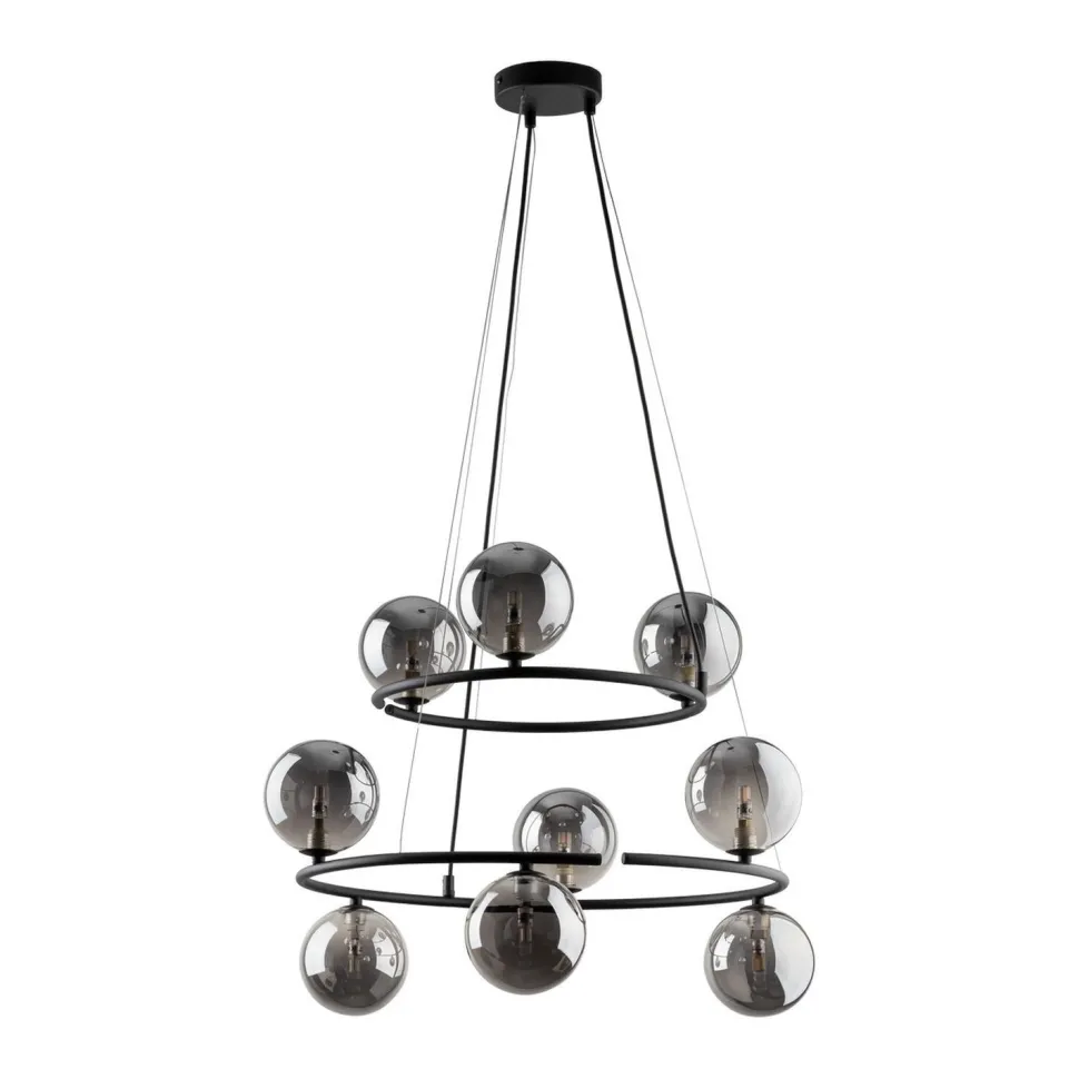 Elegante Pendelleuchte mit Kugelschirmen aus Rauchglas