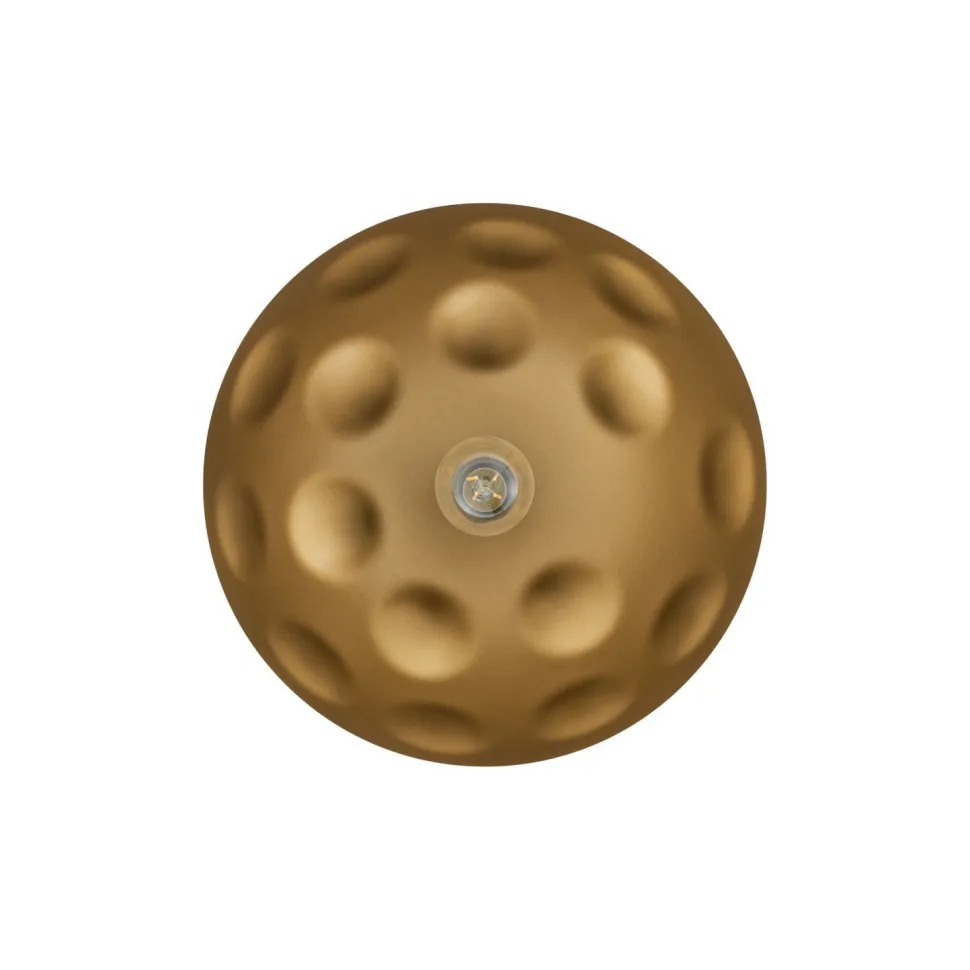 Das Licht scheint auf die goldfarbene Innenseite des Schirms, was für eine schimmernde Lichtwirkung sorgt
