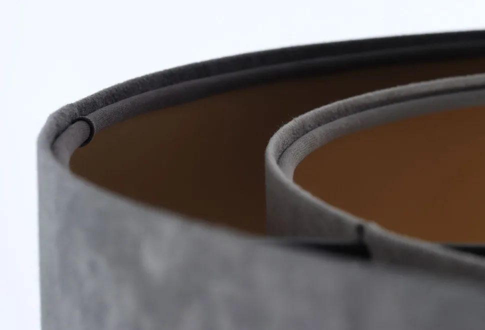 Der Doppelschirm aus Microfaser Stoff erinnert an samtiges Velours-Leder und setzt überall einen stilvollen und dekorativen Akzent (Durch die Oberflächen kann der Schirm je nach Licht heller oder dunkler wirken)