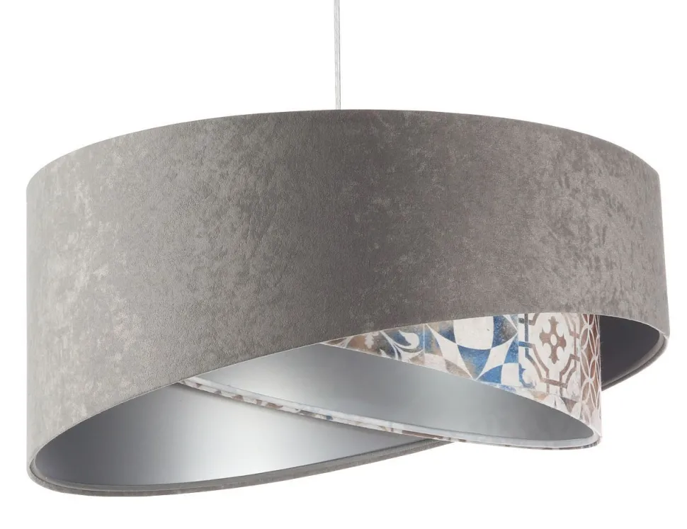 Elegante Pendelleuchte in Grau, Beige, Silber mit stilvollen Vintage Print für Wohnzimmer, Schlafzimmer und Esszimmer