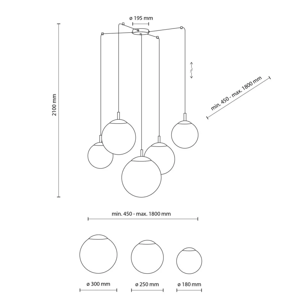 Die unterschiedlichen Kugelschirme sorgen für einen außergewöhnlichen Look, der die Hängelampe zu einem dekorativen Blickfang macht