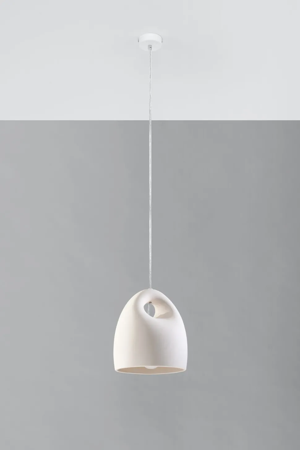 Weiße Pendelleuchte mit kunstvollem Lampenschirm aus Keramik