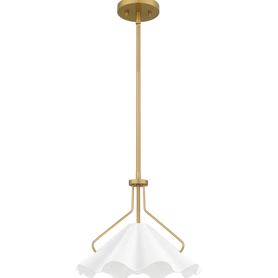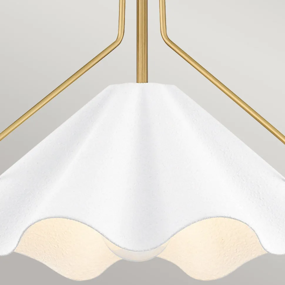 Kunstvolle Pendelleuchte mit Faltenschirm aus Metall