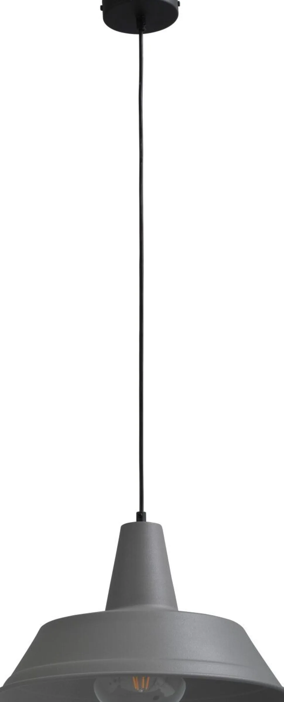 Der flache Schirm in der Trendfarbe Grau ist besonders gut für niedrige Räume geeignet