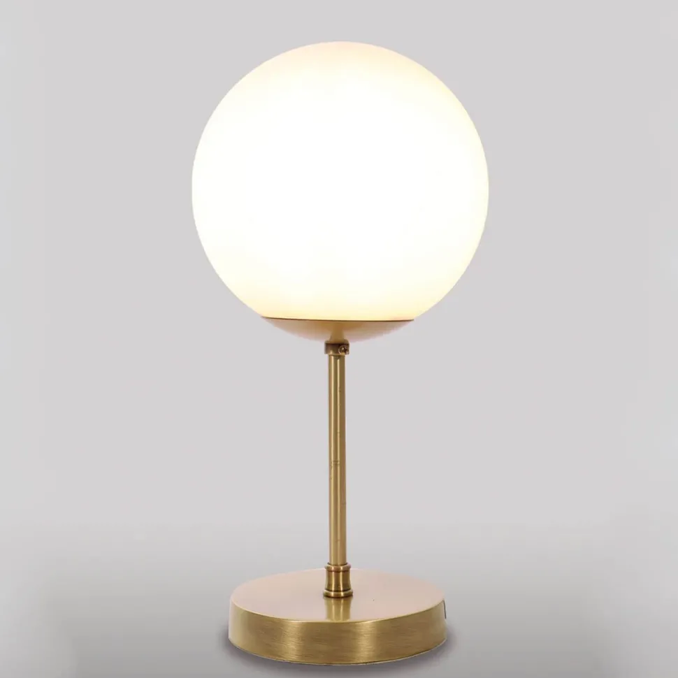 Elegante Tischleuchte aus massivem Messing mit Glas Kugel Schirm