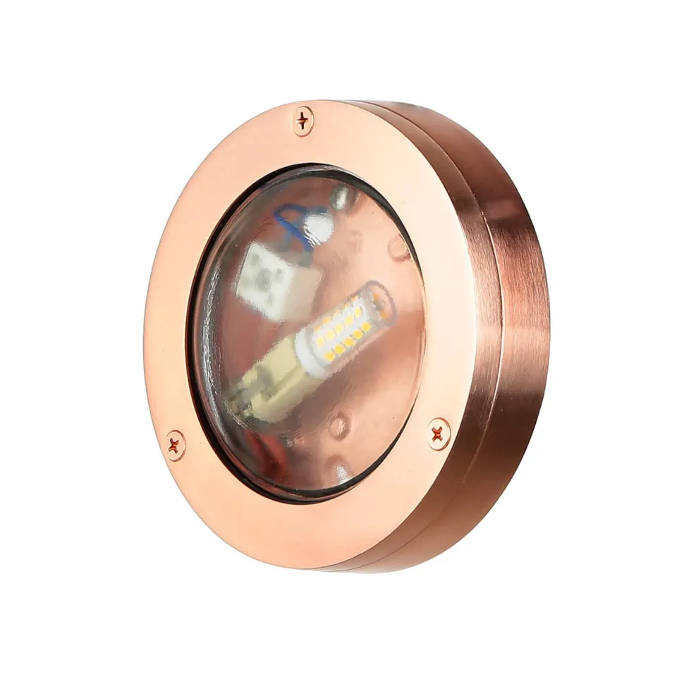Die hochwertige Außenleuchte erinnert an ein antikes Bullauge und setzt als maritime Deko stilvolle Akzente