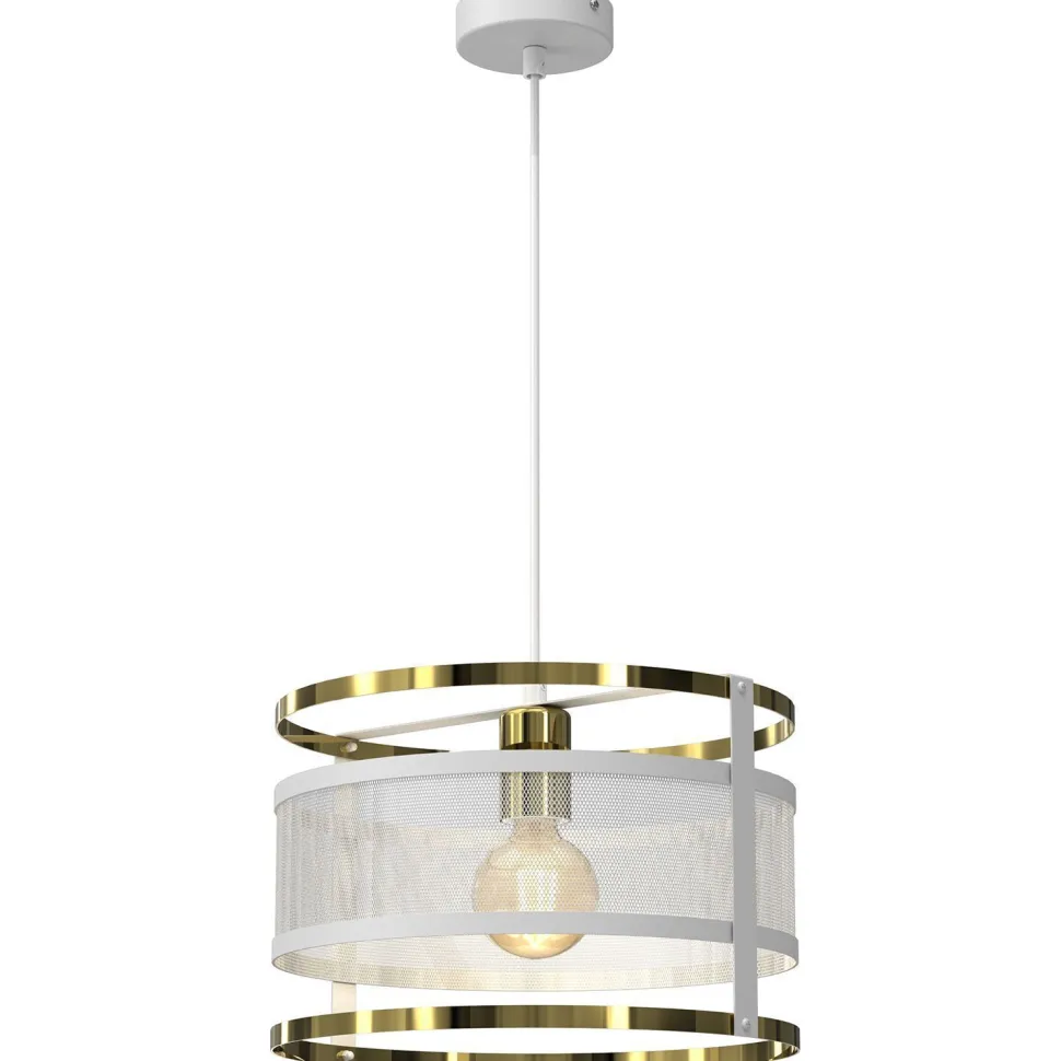 Loft Hängelampe aus lackiertem Stahl in Weiß und glänzendem Gold
