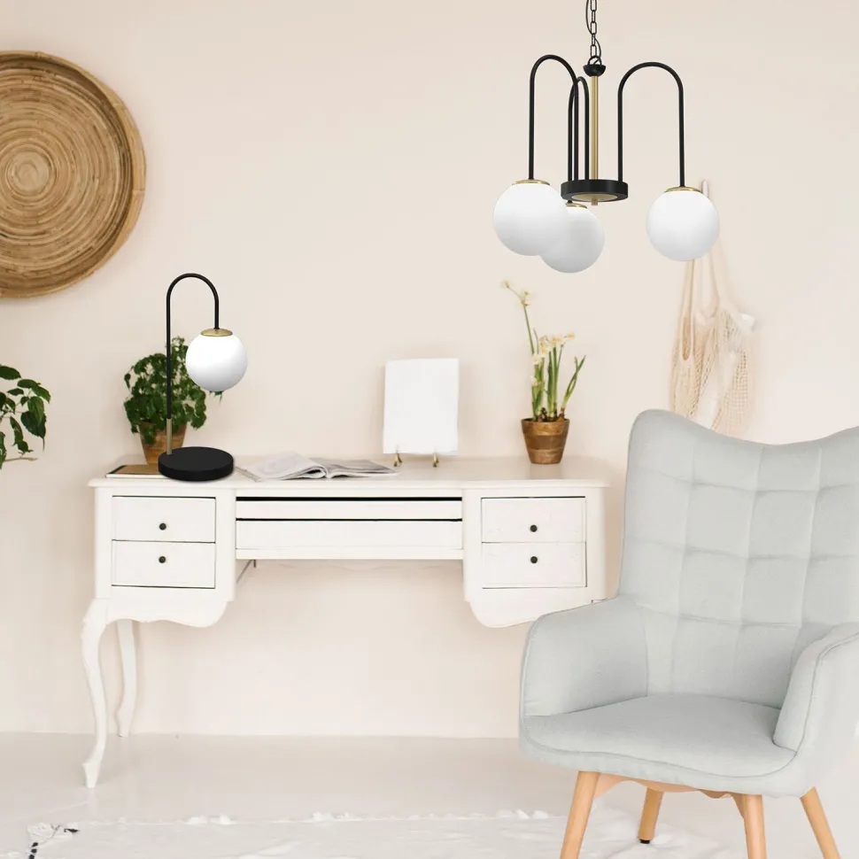 Die satinierten Glasschirme im Kugel Design streuen das Licht blendarm