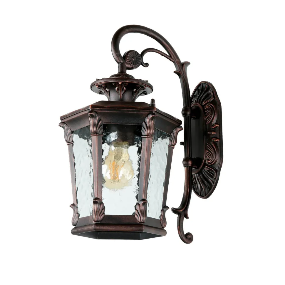 Rustikale Wandlampe für Außen mit zahlreichen, verspielten Details
