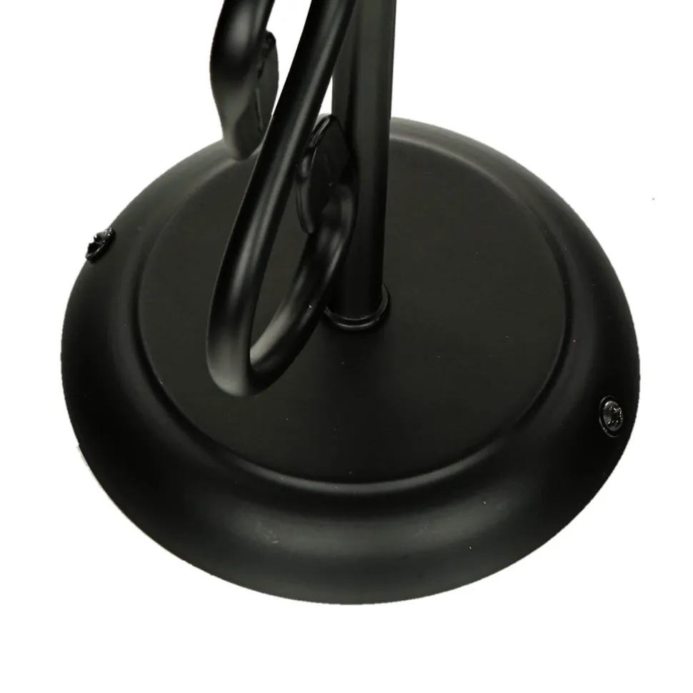 Das schwarze Metall erinnert an massives Schmiedeeisen, was den antiken Look der Wandleuchte weiter betont