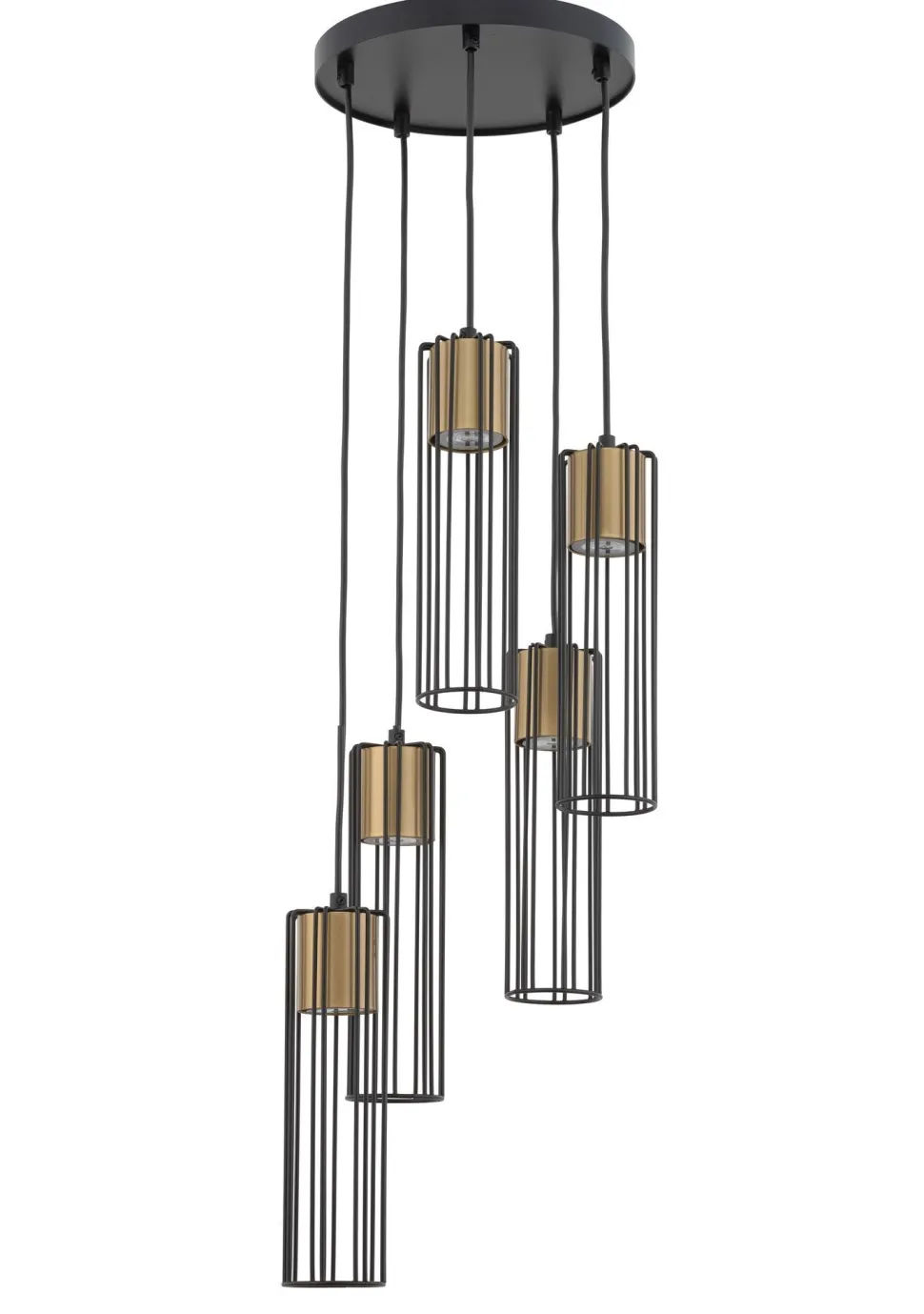 Moderne Pendelleuchte aus lackiertem Stahl in Schwarz und Gold