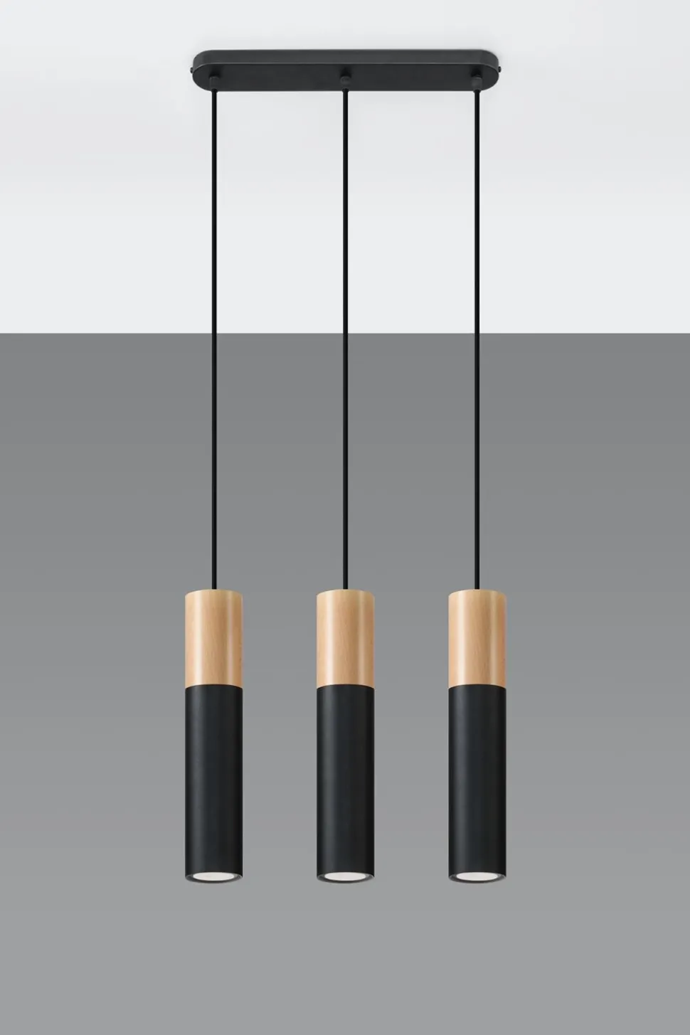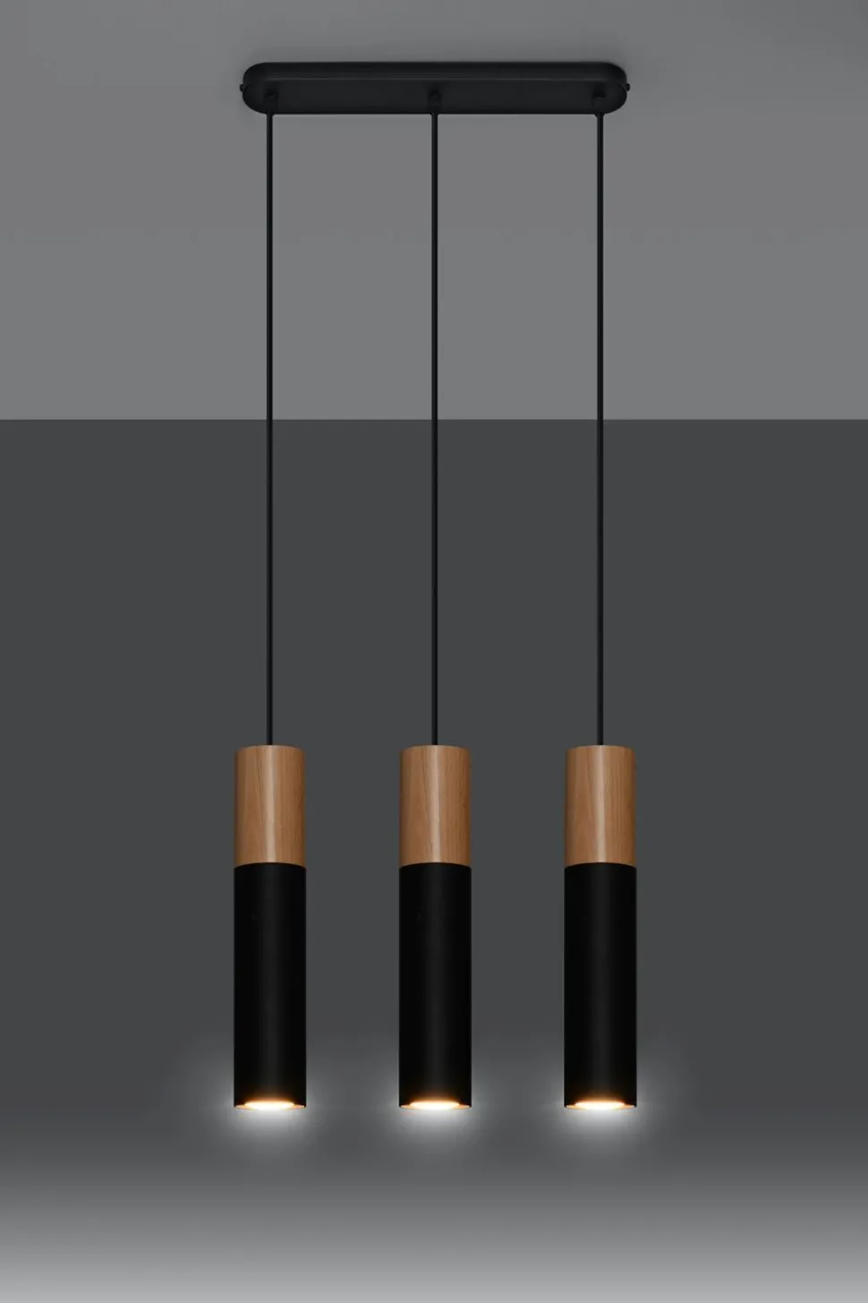 Skandinavische Pendelleuchte aus Metall und Holz