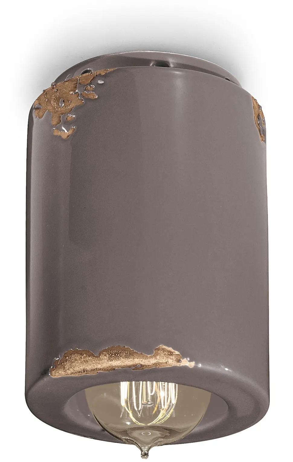 Runder Aufputz Deckenspot aus massiver Keramik in Taupe (Grau Braun)