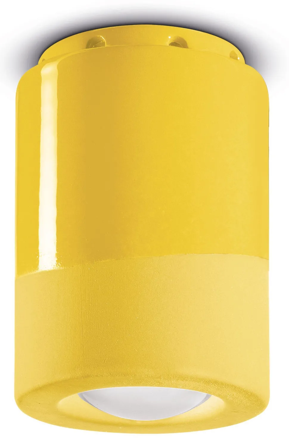Runder Aufputz Deckenspot aus massiver Keramik in knalligem Gelb