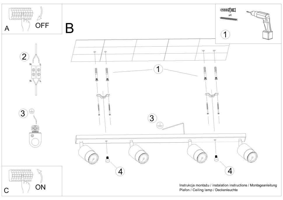 Die Deckenleuchte erlaubt dank der dreh- und schwenkbaren Schirme eine zielgerichtete Beleuchtung und passt ideal in Wohnzimmer, Küche und Flur