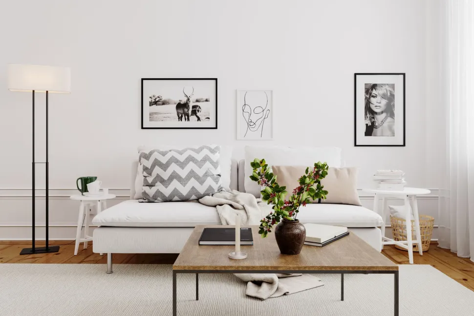 Der Schwarz-Weiß Look lässt sich leicht kombinieren und macht aus der Stehleuchte einen vielseitigen Lichtbringer