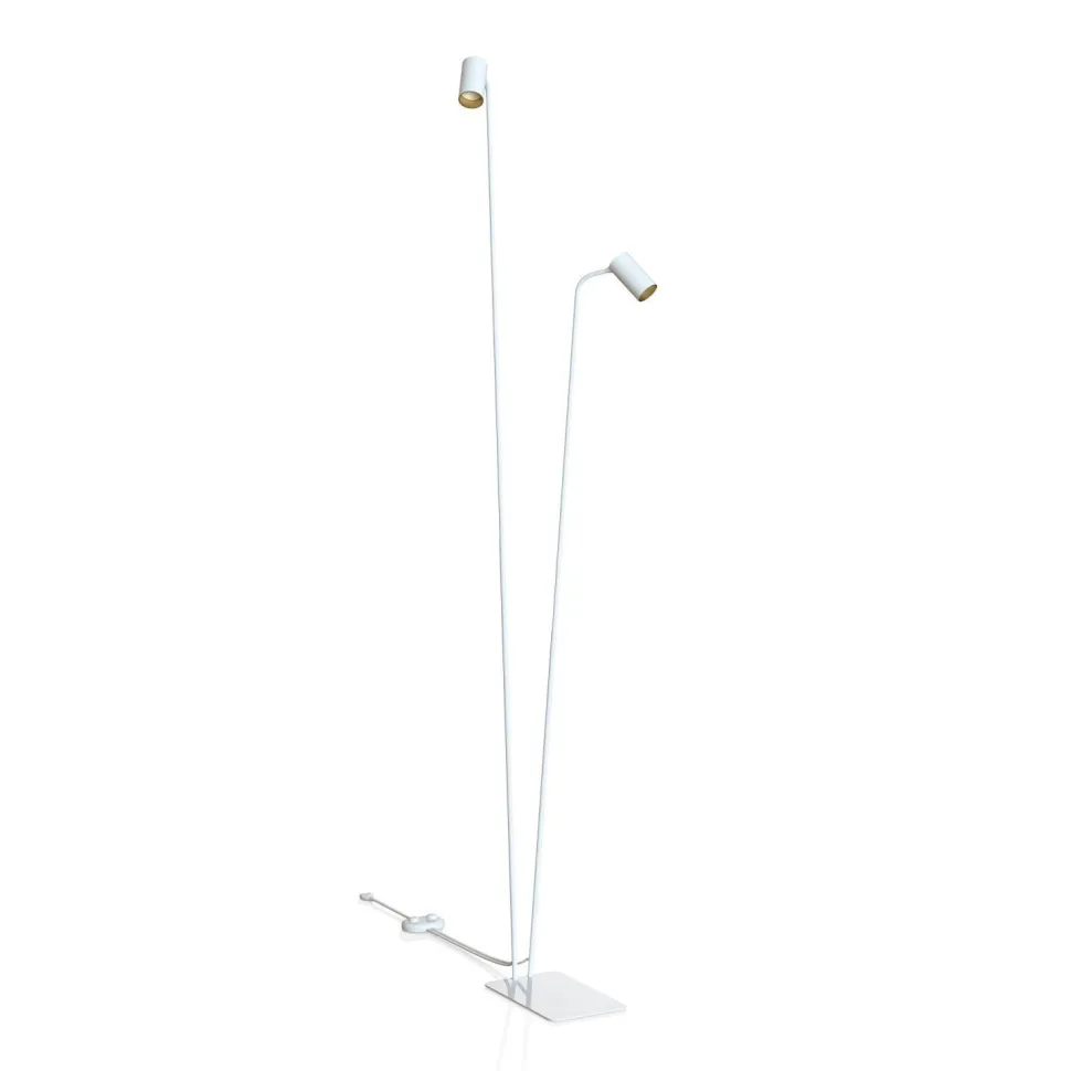 Die Stehleuchte sorgt dank der dreh- und schwenkbaren Lampenschirme für eine zielgerichtete Beleuchtung – ideal zum Lesen auf dem Sofa