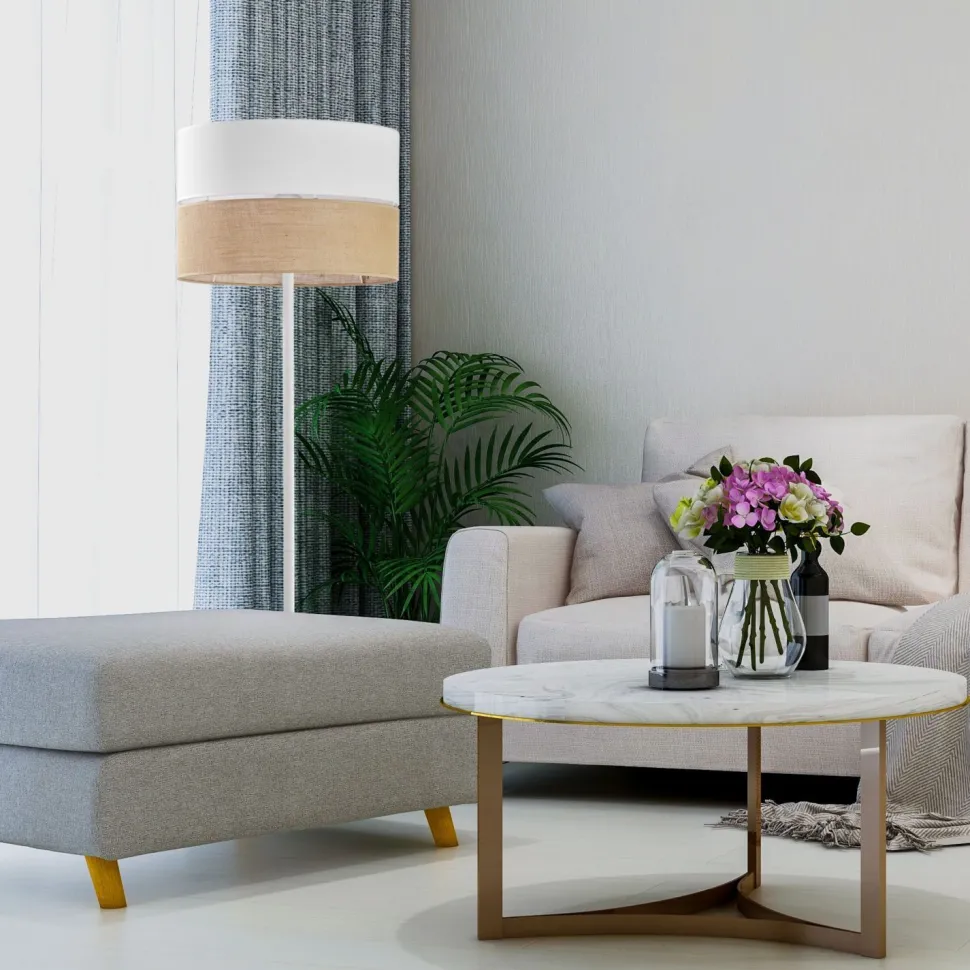 Moderne Dreibein Stehleuchte mit außergewöhnlichem Lampenschirm