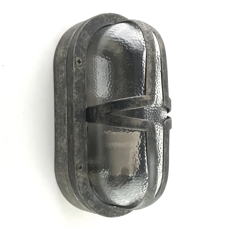Maritime Außenwandleuchte aus massivem Messing und kunstvollem Glas in Zinn: ideal als Haustür Lampe, Terrassenbeleuchtung, Balkon Lampe, Carport Beleuchtung und Garagenlampe