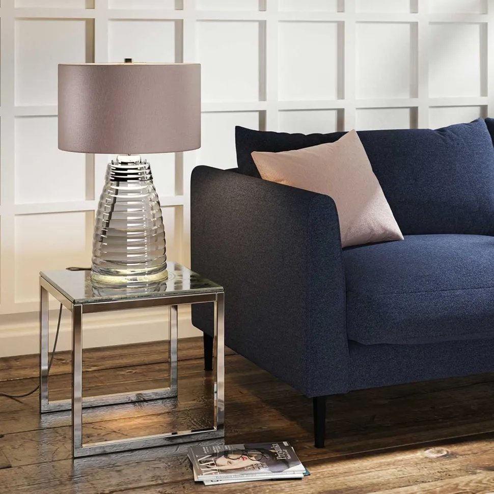 Stilvolle Tischleuchte mit beleuchtetem Sockel aus klarem Glas