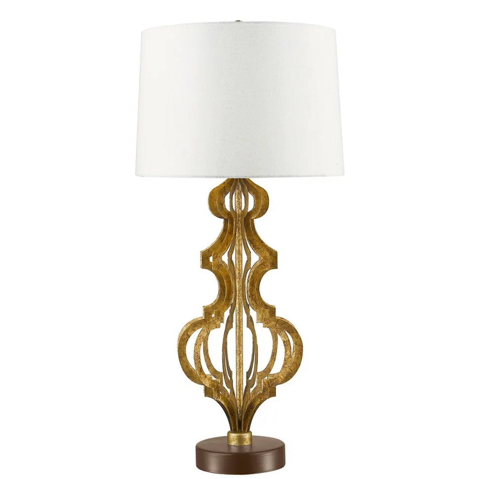 Dekorative Tischleuchte mir kunstvoller Säule in Gold und Weiß