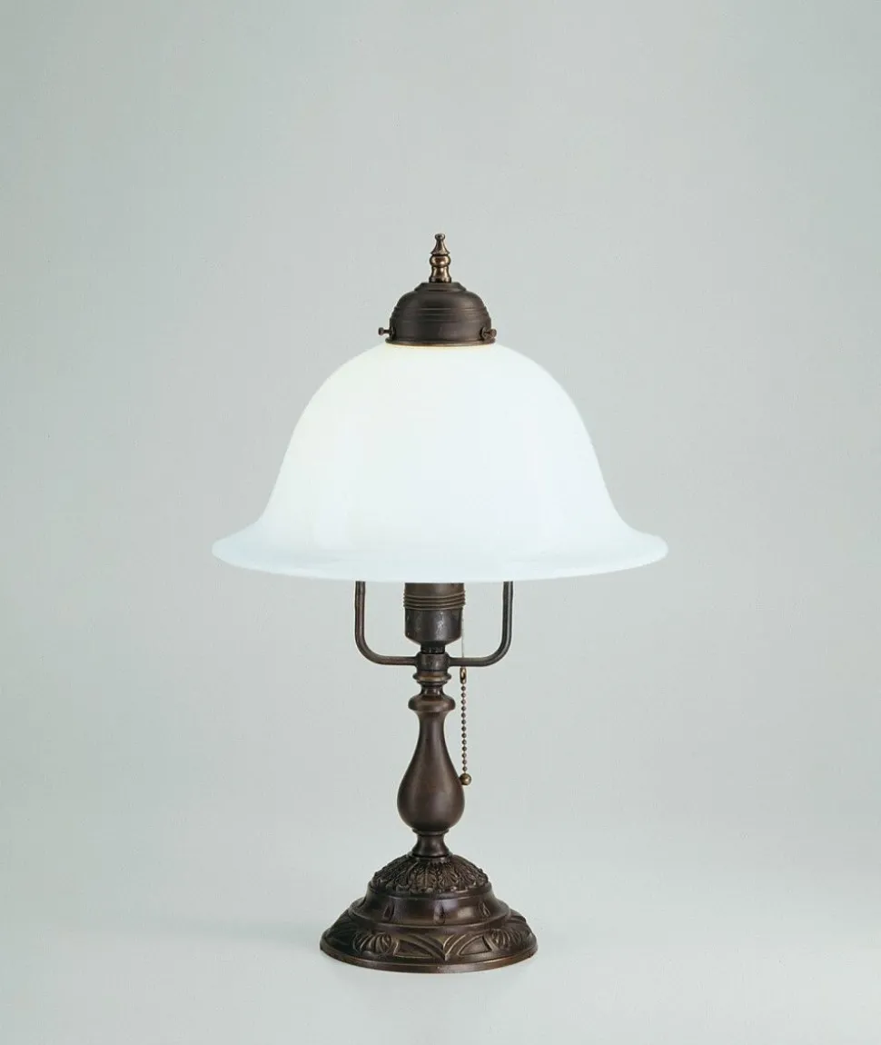 Die antike Oberfläche in Kombination mit geweißtem Glasschirm verleiht Deinem Zuhause ein wohnliches Ambiente
