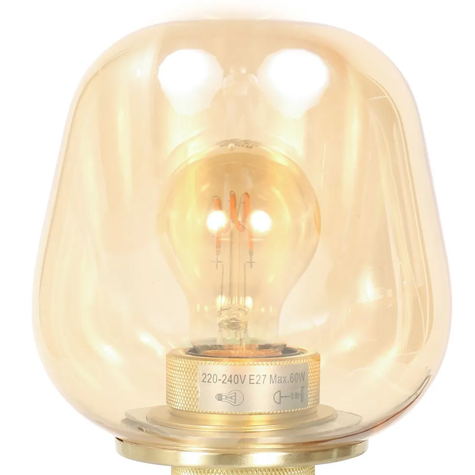 Moderne Tischleuchte aus Metall und Glas in Schwarz und Messing