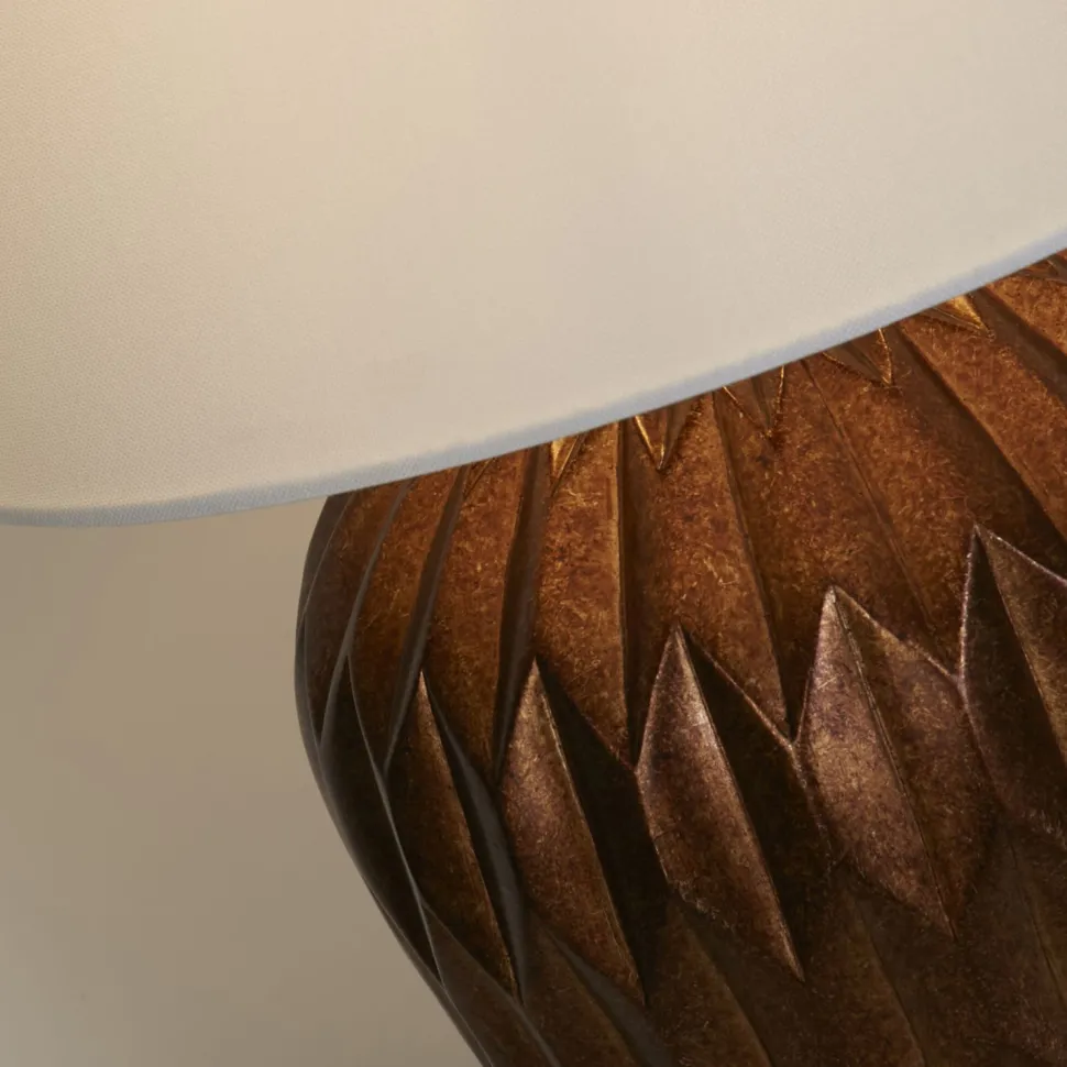 Moderne Tischleuchte aus Harz und Leinen in Bronze und Weiß