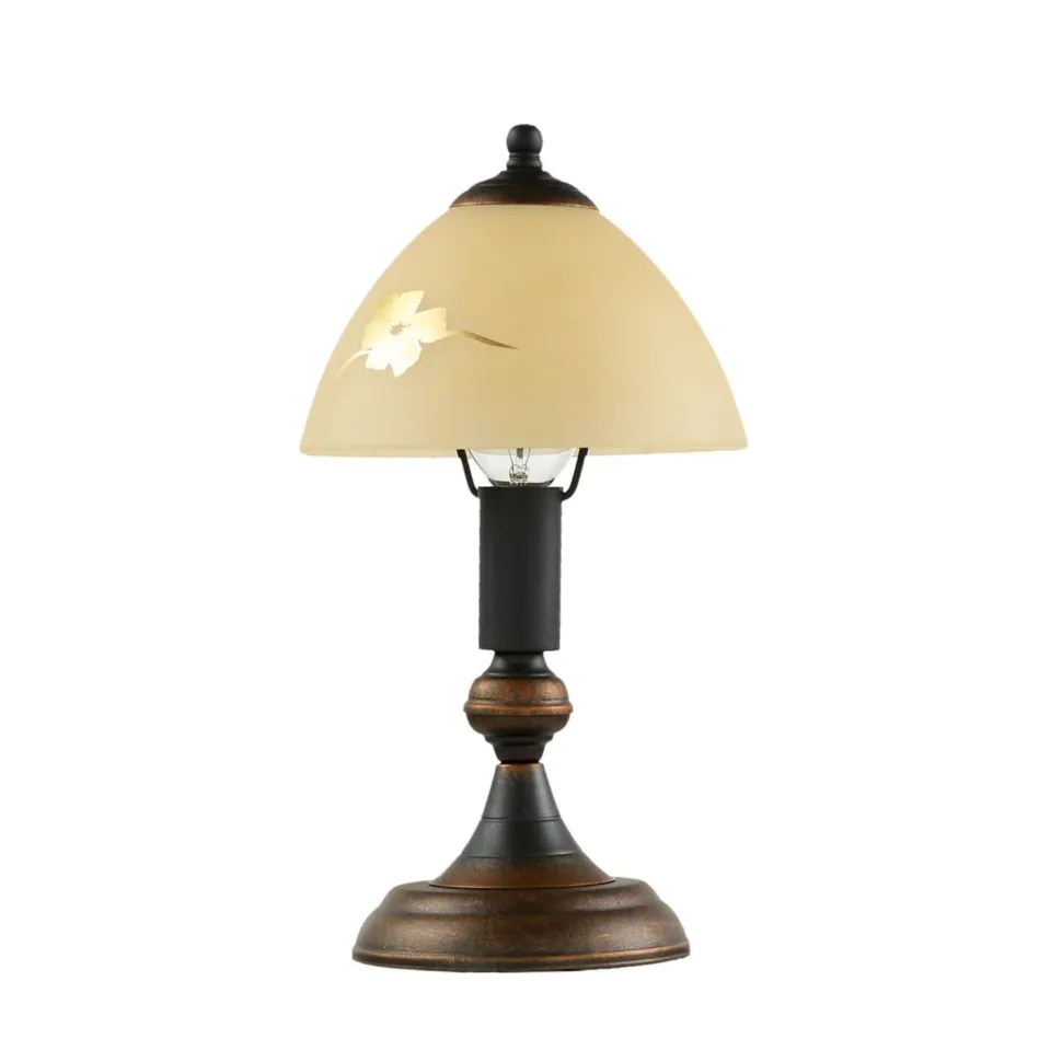 Die Bilder zeigen Tag- und Nachtaufnahmen, daher können die Farben auf den Abbildungen variieren Entdecke die charmante Tischlampe im rustikalen Landhausstil, die deinem Zuhause eine einladende Atmosphäre verleiht. Diese stilvolle Tischleuchte ist nicht nur ein Blickfang, sondern auch die perfekte Ambientebeleuchtung für dein Wohnzimmer oder eine elegante Nachttischlampe für dein Schlafzimmer. Mit ihrem dezent verzierten Glasschirm, der mit einem feinen Blumenmuster und einer unregelmäßigen Antik-Färbung im Shabby Stil versehen ist, strahlt sie Gemütlichkeit und Wärme aus. Die blendarm gestreute Lichtverteilung sorgt dafür, dass du in jedem Raum eine angenehme Lichtstimmung genießen kannst. Du hast die Freiheit, die Helligkeit und Lichtfarbe ganz nach deinen Wünschen zu gestalten, indem du selbst gewählte LED-Leuchtmittel verwendest. So kannst du die Tischlampe nicht nur als dekoratives Element, sondern auch als funktionale Lichtquelle nutzen. Ob für entspannte Abende auf der Couch oder als sanfte Beleuchtung beim Lesen im Bett – diese Tischlampe passt sich deinem Lebensstil an. Die Kombination aus Glas und rustikalem Design macht diese Tischlampe zu einer idealen Wahl für alle, die Wert auf Qualität und Stil legen. Sie fügt sich harmonisch in verschiedene Einrichtungsstile ein und ist eine hervorragende Ergänzung für dein Wohnzimmer oder Schlafzimmer. Lass dich von der zeitlosen Eleganz dieser Tischlampe im Landhausstil inspirieren und schaffe dir ein Zuhause, das zum Verweilen einlädt. Fazit: Mit dieser dekorativen Tischlampe im Landhausstil holst du dir nicht nur ein funktionales Licht ins Haus, sondern auch ein Stück Gemütlichkeit und Stil. Perfekt für alle, die das Besondere lieben und Wert auf eine harmonische Wohnatmosphäre legen.