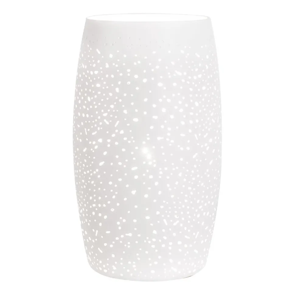 Das Licht erstrahlt wie kleine Sterne durch kleine Öffnungen im Schirm, zusätzlich scheint es nach oben – für eine dekorative Beleuchtung in jedem Raum