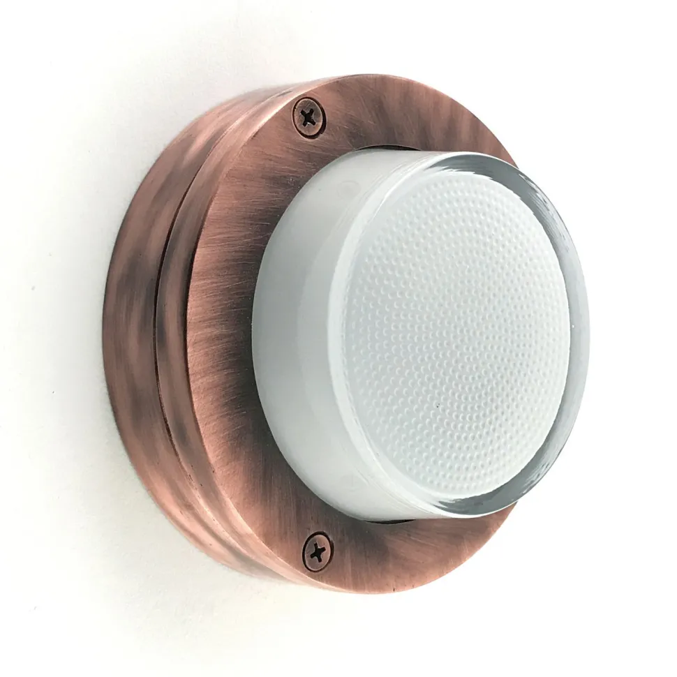 Runde außen Wandlampe aus massivem Messing und satiniertem Glas in Kupfer antik und Weiß: ideal als Haustür Lampe, Terrassenlampe, Balkon Lampe, Carport Beleuchtung und Garagenlampe