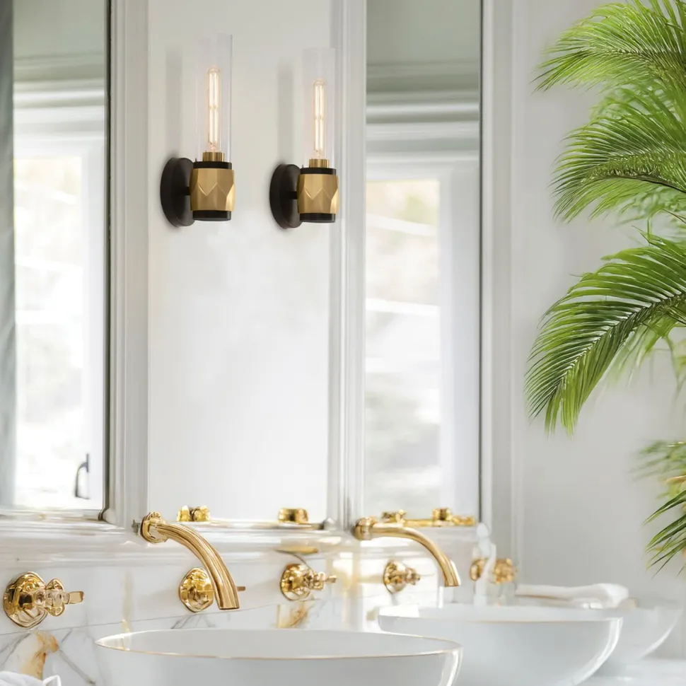 Akzente in Messing antik sorgen für einen modernen Look, der die Badlampe zu einem dekorativen Blickfang macht