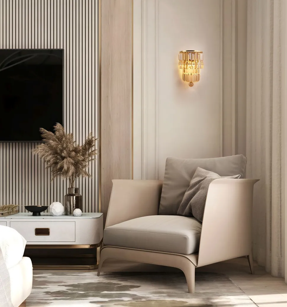 Moderne Wandlampe aus Stahl und Glas in Messing und Champagner
