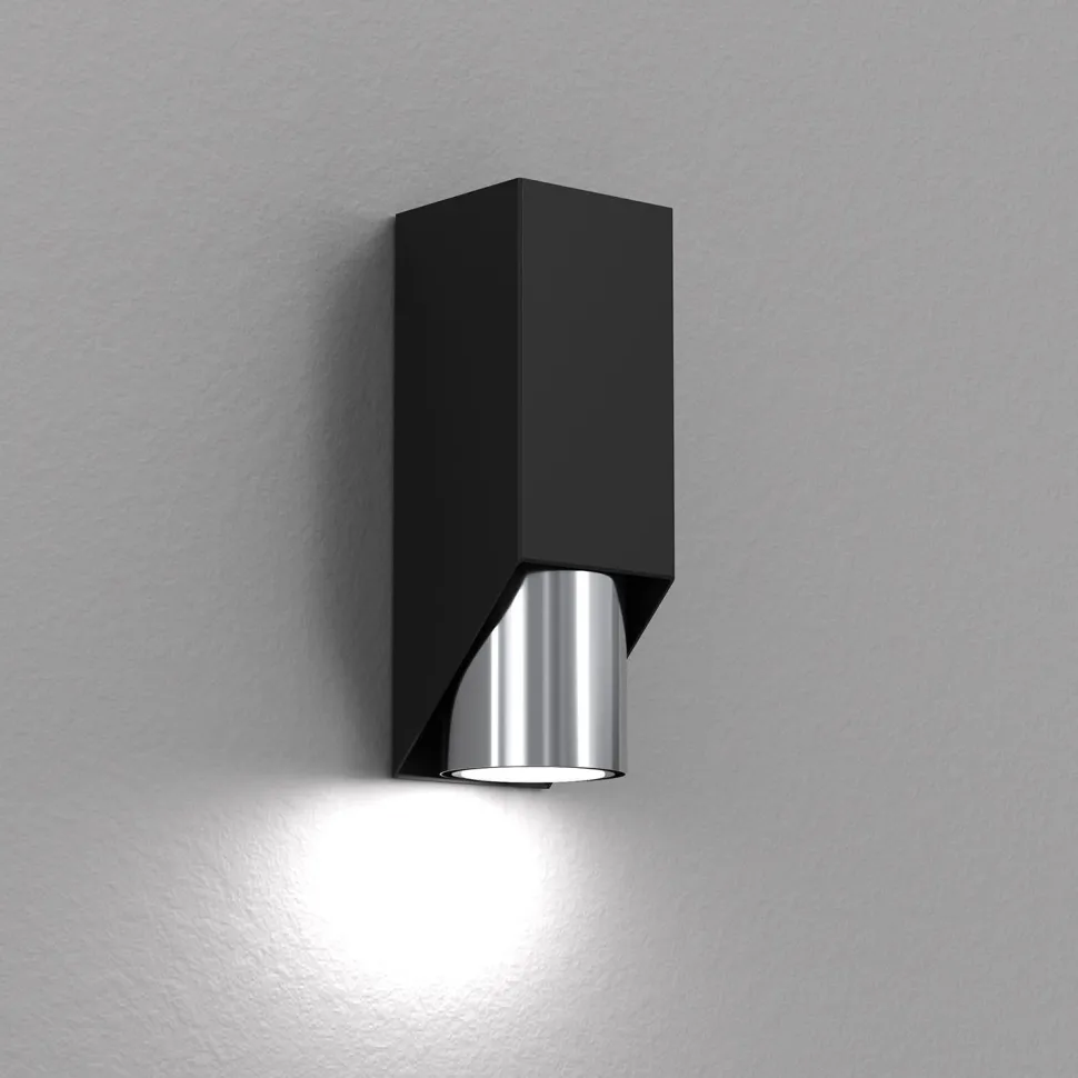 Moderne Wandlampe aus lackiertem Stahl in Schwarz und Chrom