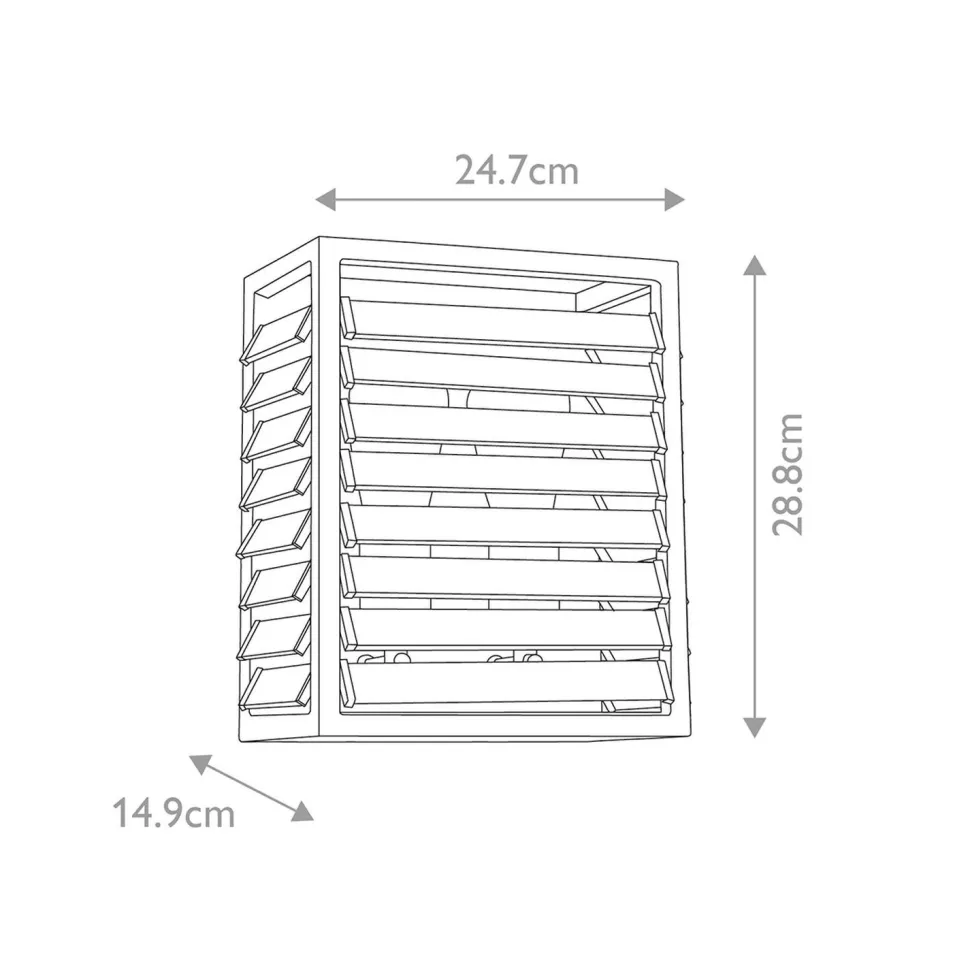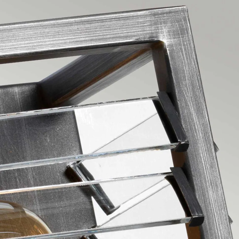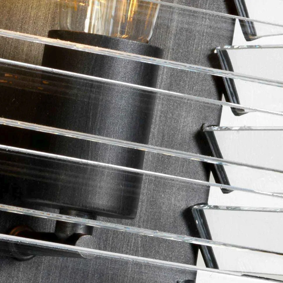 Der Lampenschirm mit seinen Glas Lamellen erinnert an alte Fabrikfenster, was aus der Wandleuchte einen dekorativen Blickfang für Wohnzimmer und Flur macht