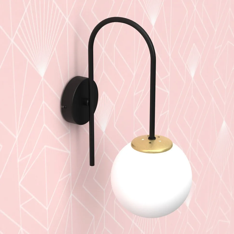 Moderne Wandleuchte aus lackiertem Stahl und Glas in Schwarz, Weiß und gebürstetem Messing